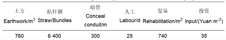 修復溝毀耕地再造面積740m2,工程投資2.53萬元,每再造1m2耕地35元。